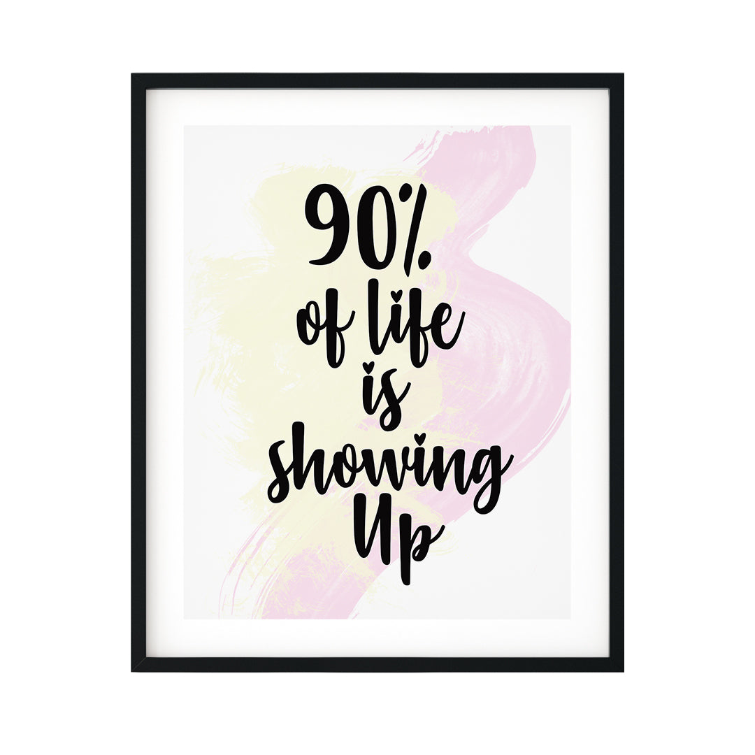 90% Of Life Is Showing Up UNFRAMED Print Inspirational Wall Art