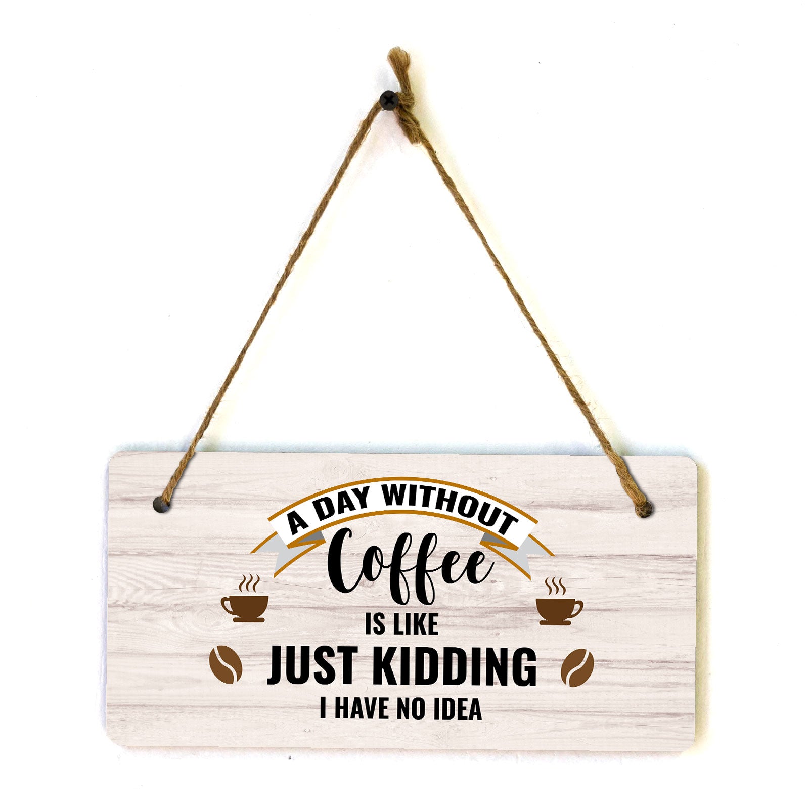 A Day Without Coffee Is Like Just Kidding I Have No Idea 5" x 10" Hanging Wall or Door Sign | Funny Coffee Home & Office Decor