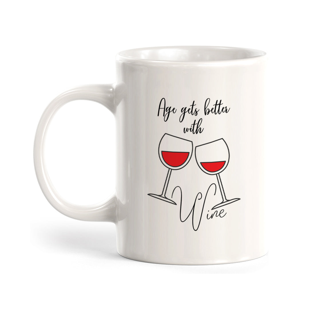 Age gets Better with Wine Coffee Mug. Treat yourself or give as a gift to someone special. Our fun novelty coffee mugs are great small gifts for loved ones, colleagues, partners and friends. Drinking your favorite drink will never be boring. Fun, novelty coffee mug for yourself or loved ones.