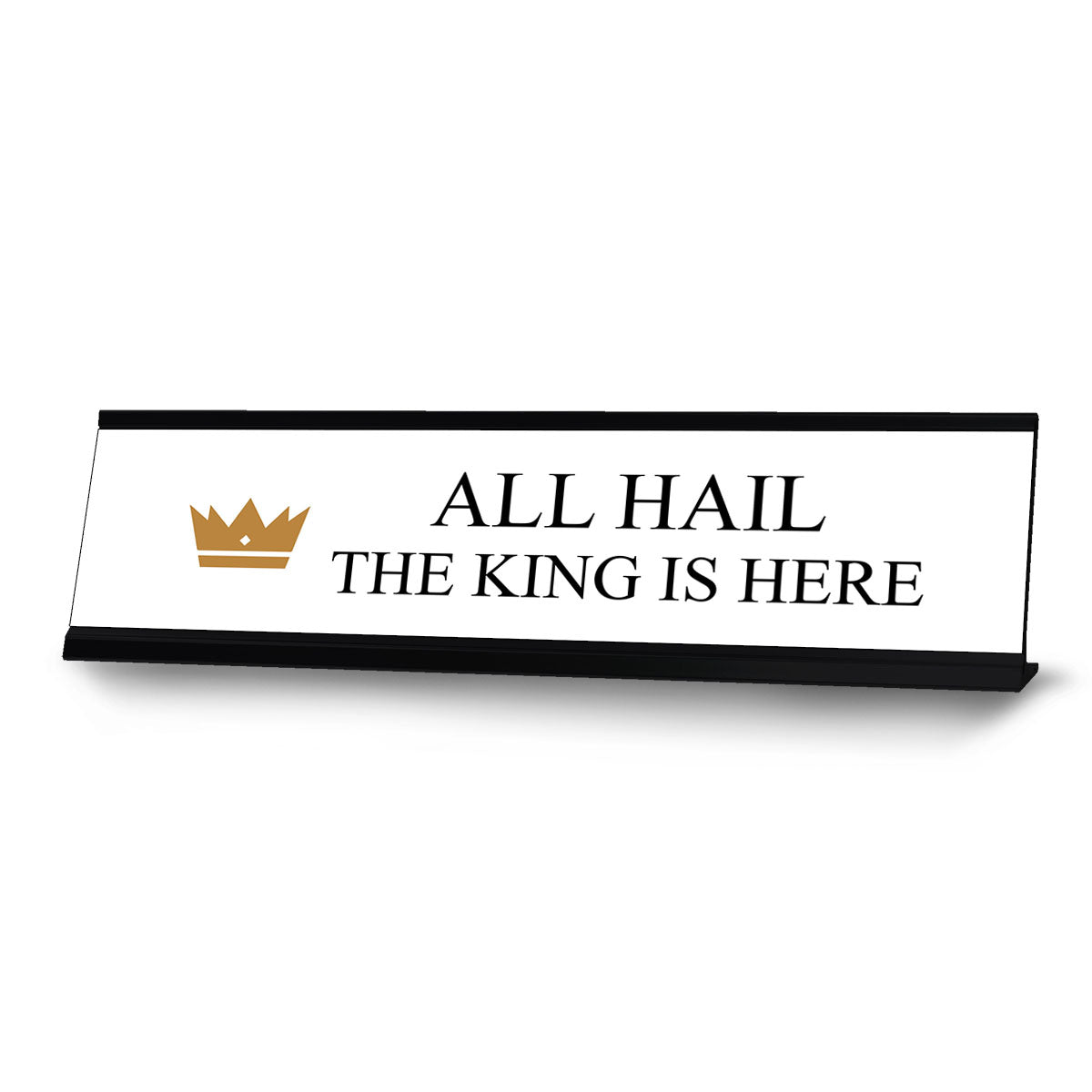Signs ByLITA Designer Office Desk Sign "All Hail. The King is Here". Great novelty desk sign idea for friends, family, colleagues, managers and bosses. Great idea for a funny gag gift. Add a little bit of humor to someones day with this fn desk sign.