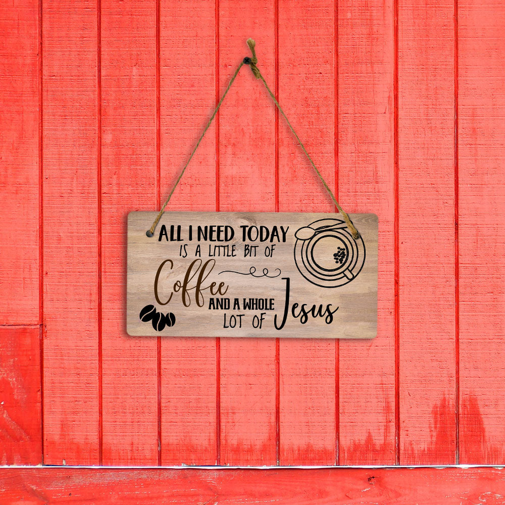 All I Need Today Is A Little Bit Of Coffee And A Whole Lot Of Jesus 5x10 Hanging Plus Wall or Door Sign | Home Decor