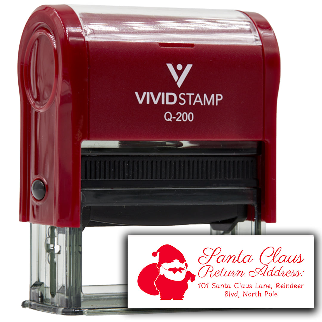 All Quality Santa Claus Return Address: 101 Santa Claus Lane, Reindeer Blvd, North Poles. Provides thousands of Impressions. Re-inkable stamp with Transparent bottom allow for precise stamp alignment. Comes in multiple colors.