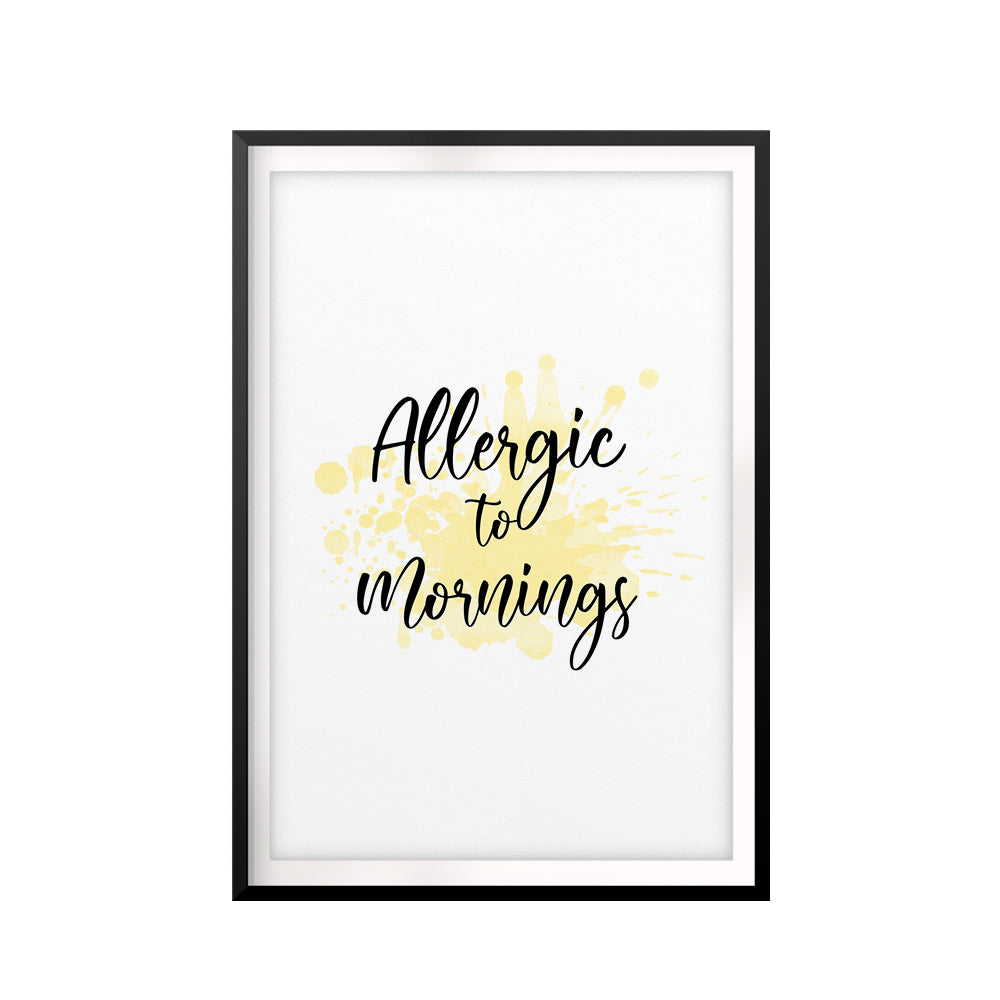 Allergic To Mornings UNFRAMED Print Novelty Wall Art