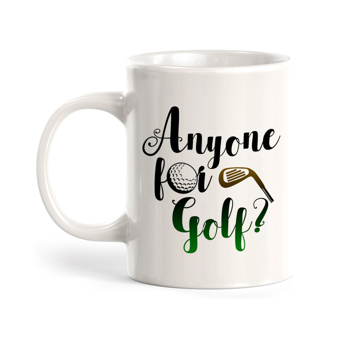 Anyone for Golf Coffee Mug. Treat yourself or give as a gift to someone special. Our fun novelty coffee mugs are great small gifts for loved ones, colleagues, partners and friends. Drinking your favorite drink will never be boring. Fun, novelty coffee mug for yourself or to gift to friends and loved ones.