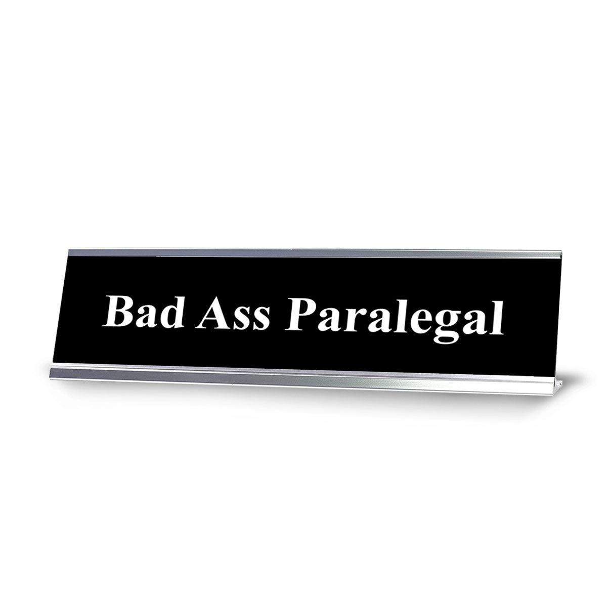 Signs By Lita Designer Desk Sign Nameplate "Bad Ass Paralegal". Beautiful office gift idea for colleagues, friends and family. Great gift for law professionals. Our novelty office desk signs look great on work desks, shelves and counters. Great small gift for your home office or work space.
