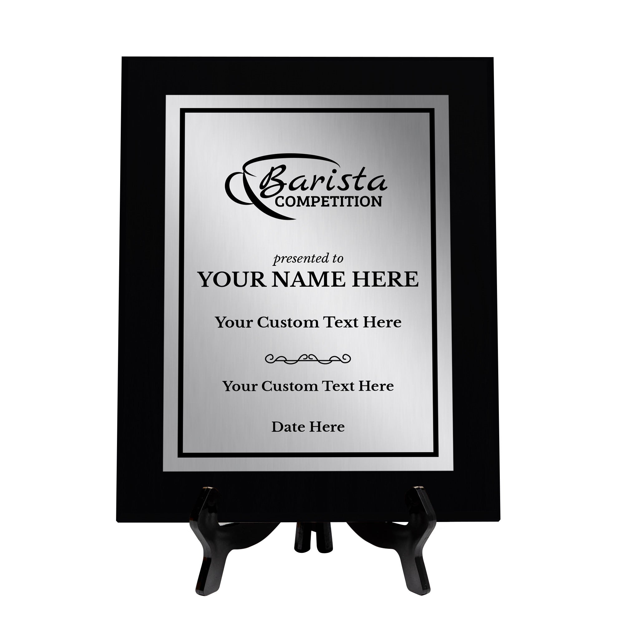 Barista Competition Customizable Black Frame Award Plaque | Easel Mount Option | Achievement and Recognition Personalizable Plaques
