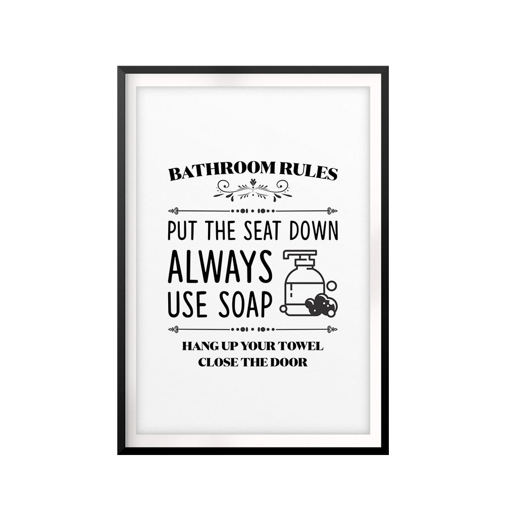 Bathroom Rules Put The Seat Down UNFRAMED Print Bathroom Decor Wall Art