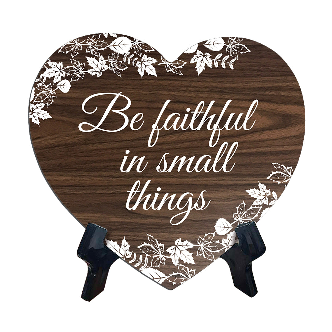Be Faithful In Small Things Heart Shape Table Sign (6 x 5.4") | God's Grace Home Decoration