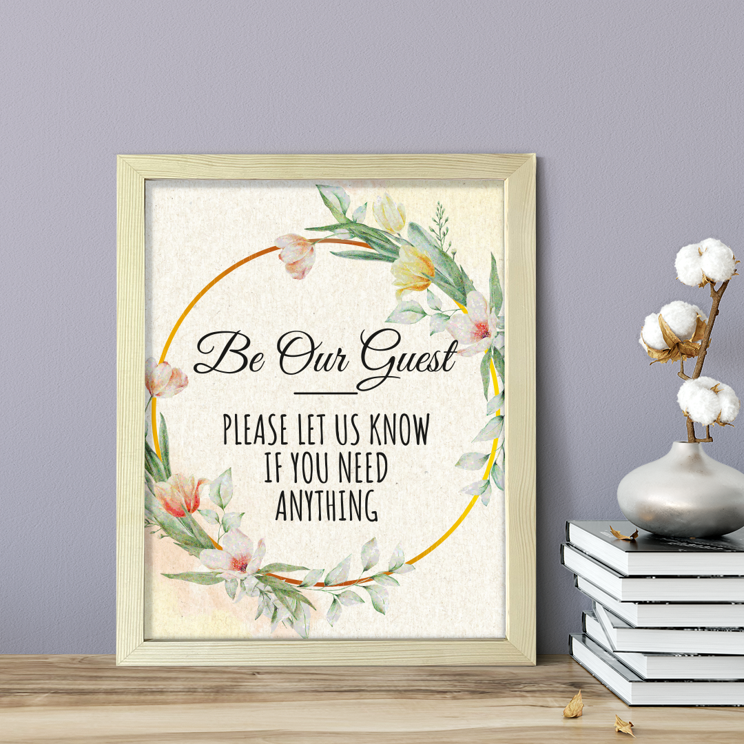 Be Our Guest - Please Let Us Know If You Need Anything, Floral UNFRAMED PRINT. Our wall art is available either as a 5" x 7", 8" x 10" or 11" x 14". Printed on 160 GSM high quality card. Comes as an UNFRAMED print. Easy to hang on any wall. This art is great for your home, office, workspace, for Air BnB properties/ hosts, and hospitality venues. Be sure to check out our other floral designs!