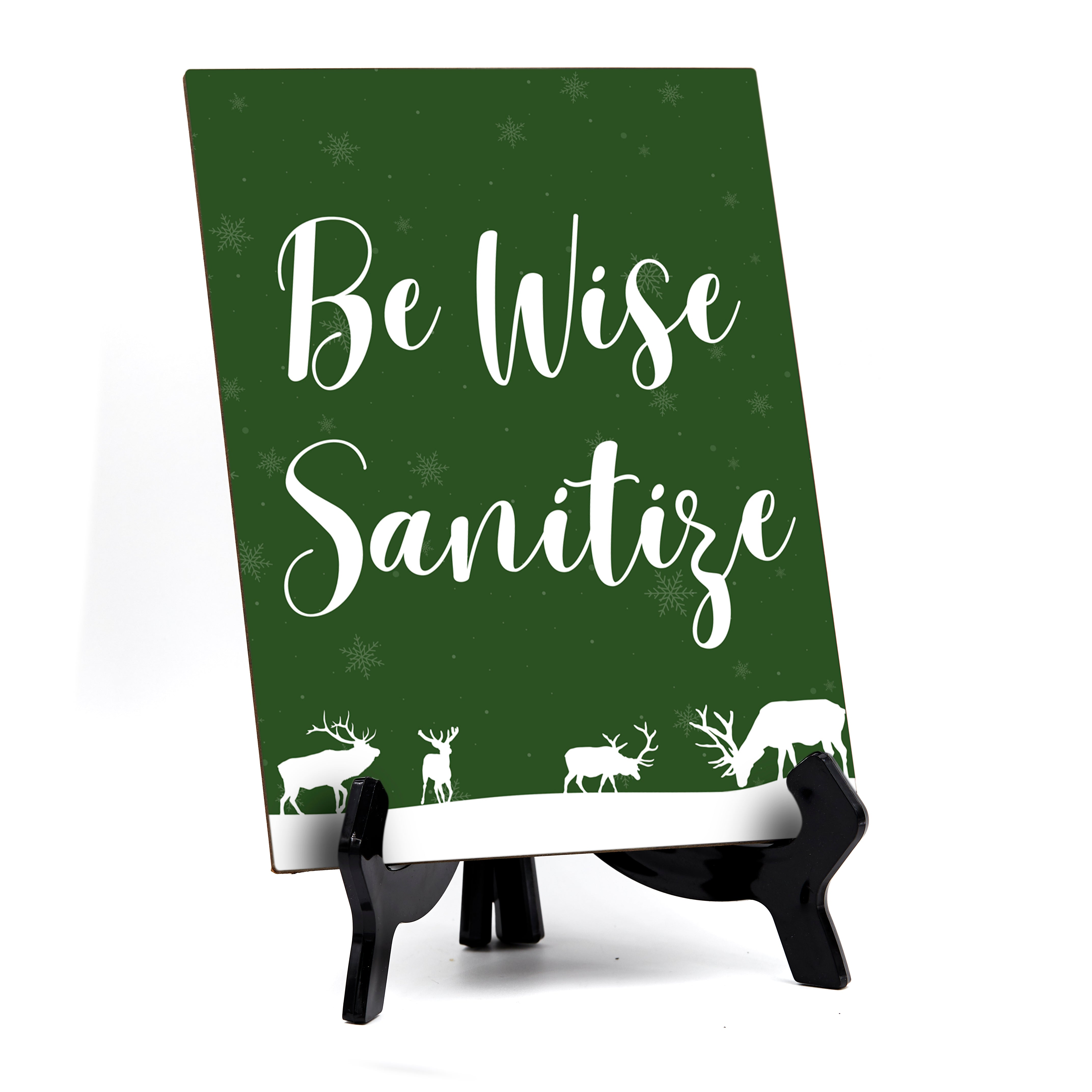 Be Wise Sanitize Sign Sign with Easel, Reindeer Design (6 x 8")