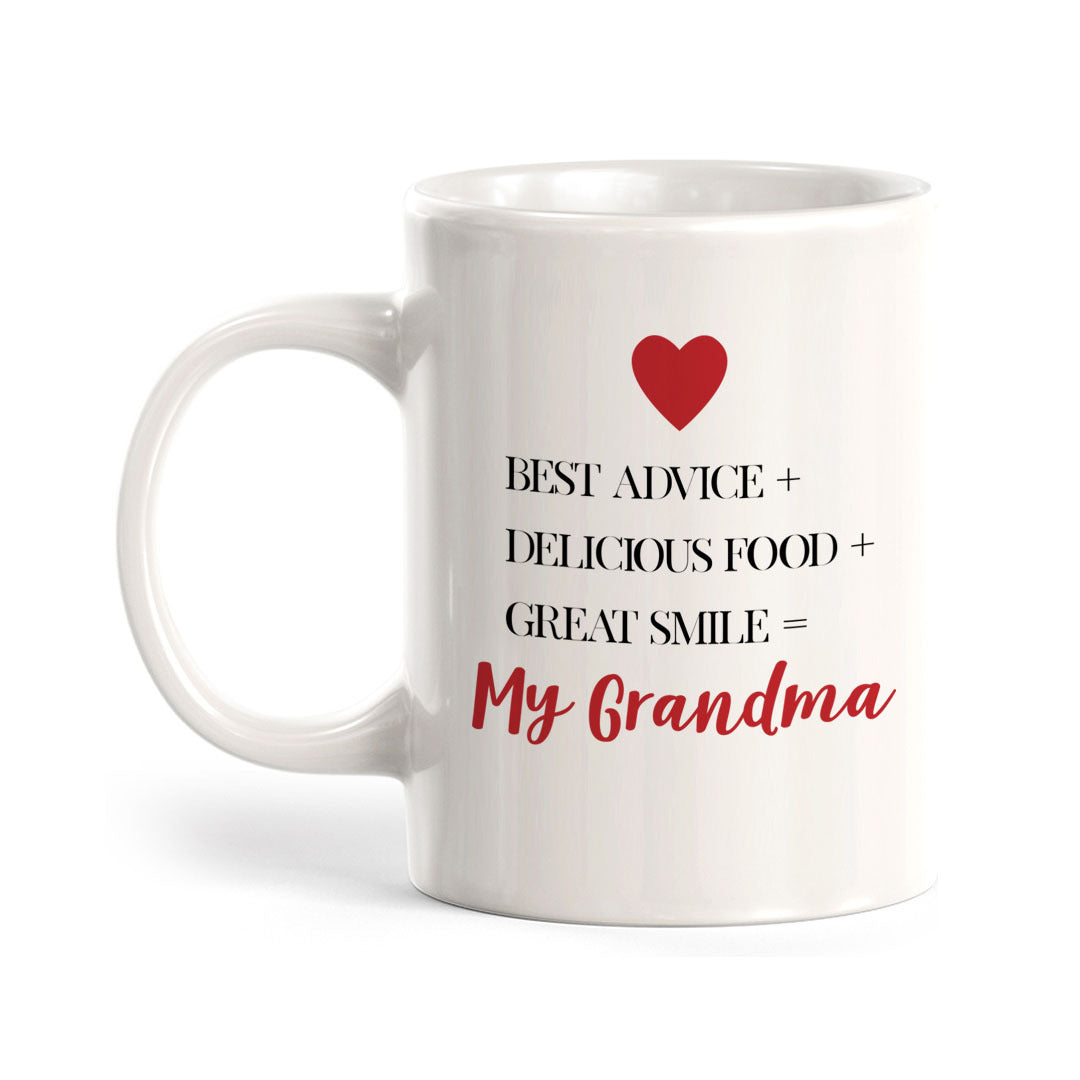 Best Advice + Delicious Food+ Great Smile = My Grandma, Coffee Mug. Treat yourself or give as...