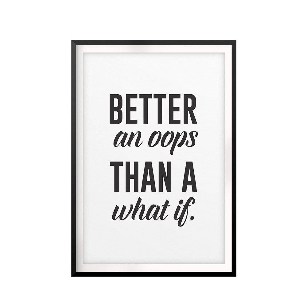 Better an OOPS Than A What If. UNFRAMED Print Inspirational Wall Art