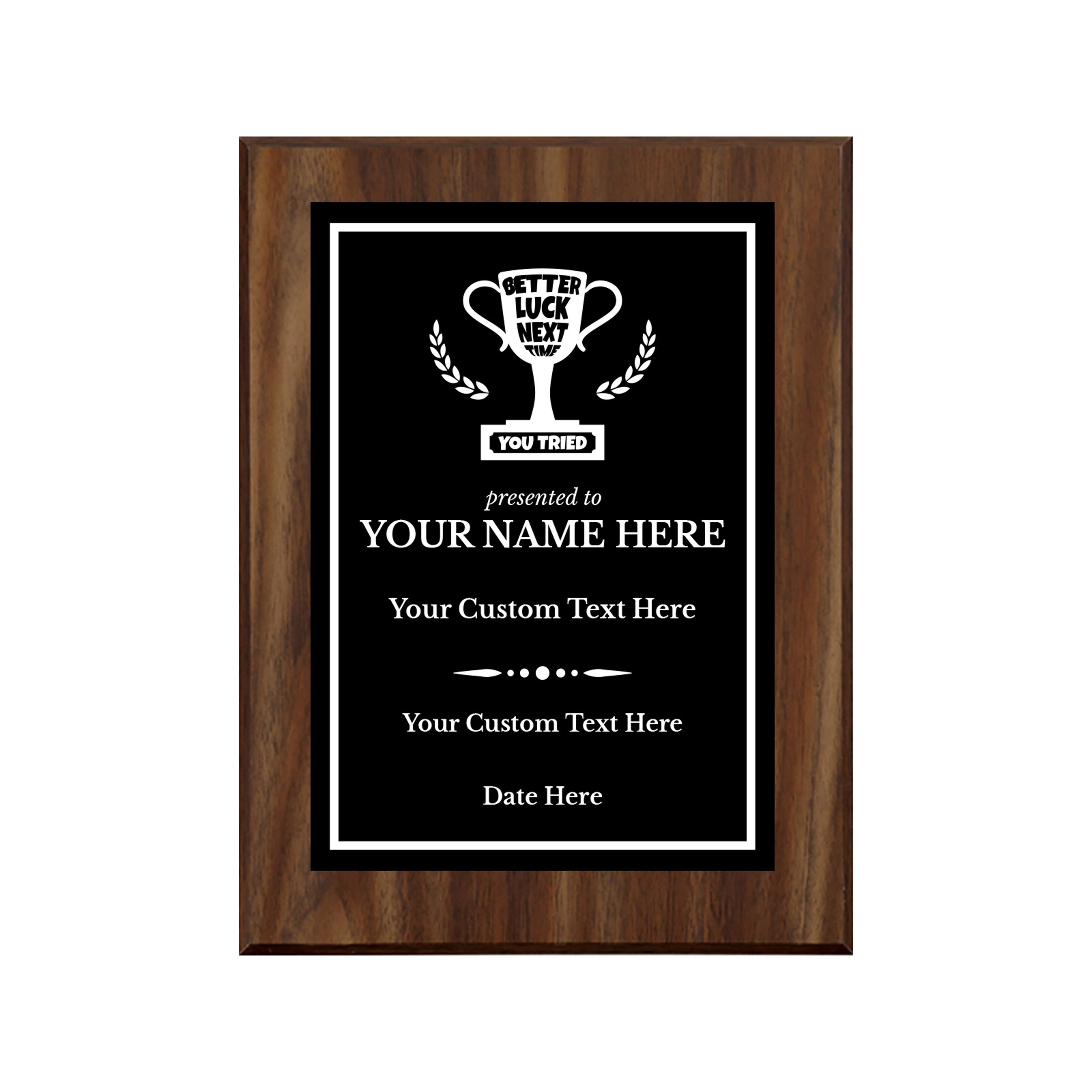 Better Luck Next Time Novelty Funny Customizable Award Plaque |Easel Mount Option | Funny Parody Achievement Personalizable Plaques