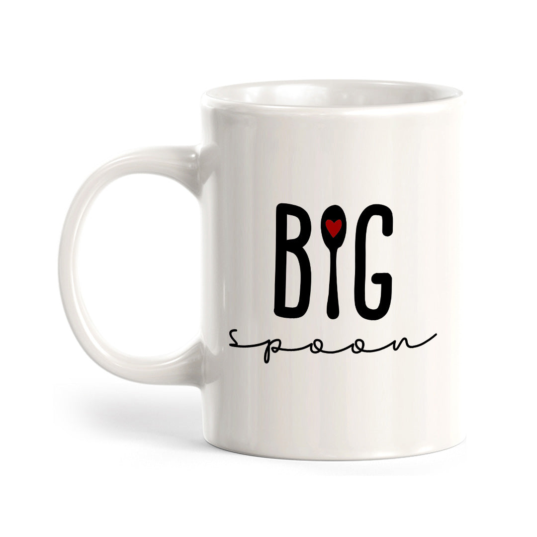 Big Spoon Coffee Mug. Start your mornings with a touch of love and laughter with our Coffee Mugs Ideas for Couples! Ideal for couples, best friends, or anyone who loves a little extra joy in their coffee routine, these mugs are designed to bring a smile to your face and warmth to your heart. Whether you're enjoying your morning coffee, afternoon tea, or any beverage of your choice, this mug holds 11 ounces, providing ample capacity for your favorite drink.