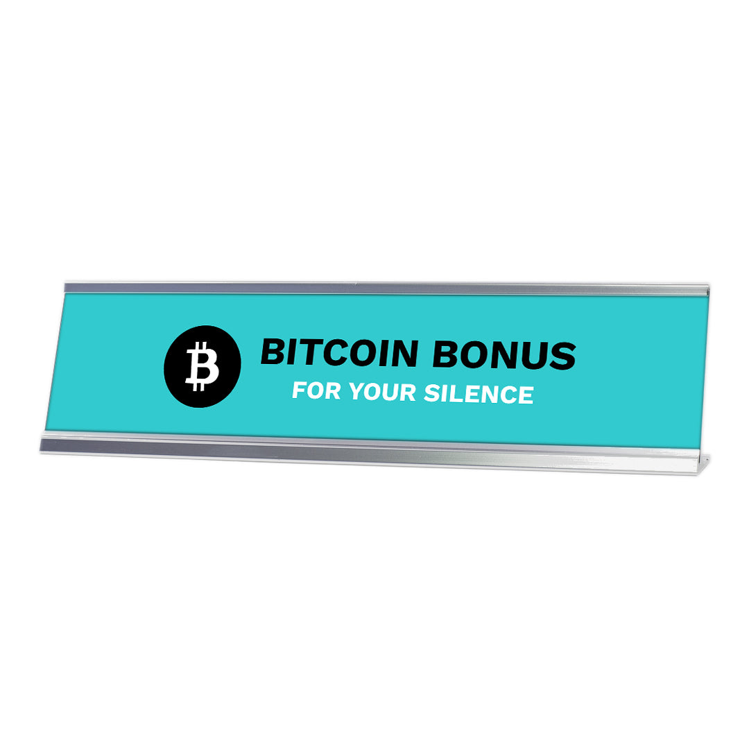 Novelty Desk Sign Nameplate "$Bitcoin Bonus For Your Silence". Fun novelty desk sign gift idea for friends,...