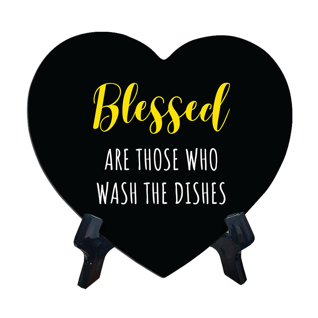Blessed Are Those Who Wash The Dishes Heart Table Sign with Acrylic Stand (6x5") | Funny Home Decor
