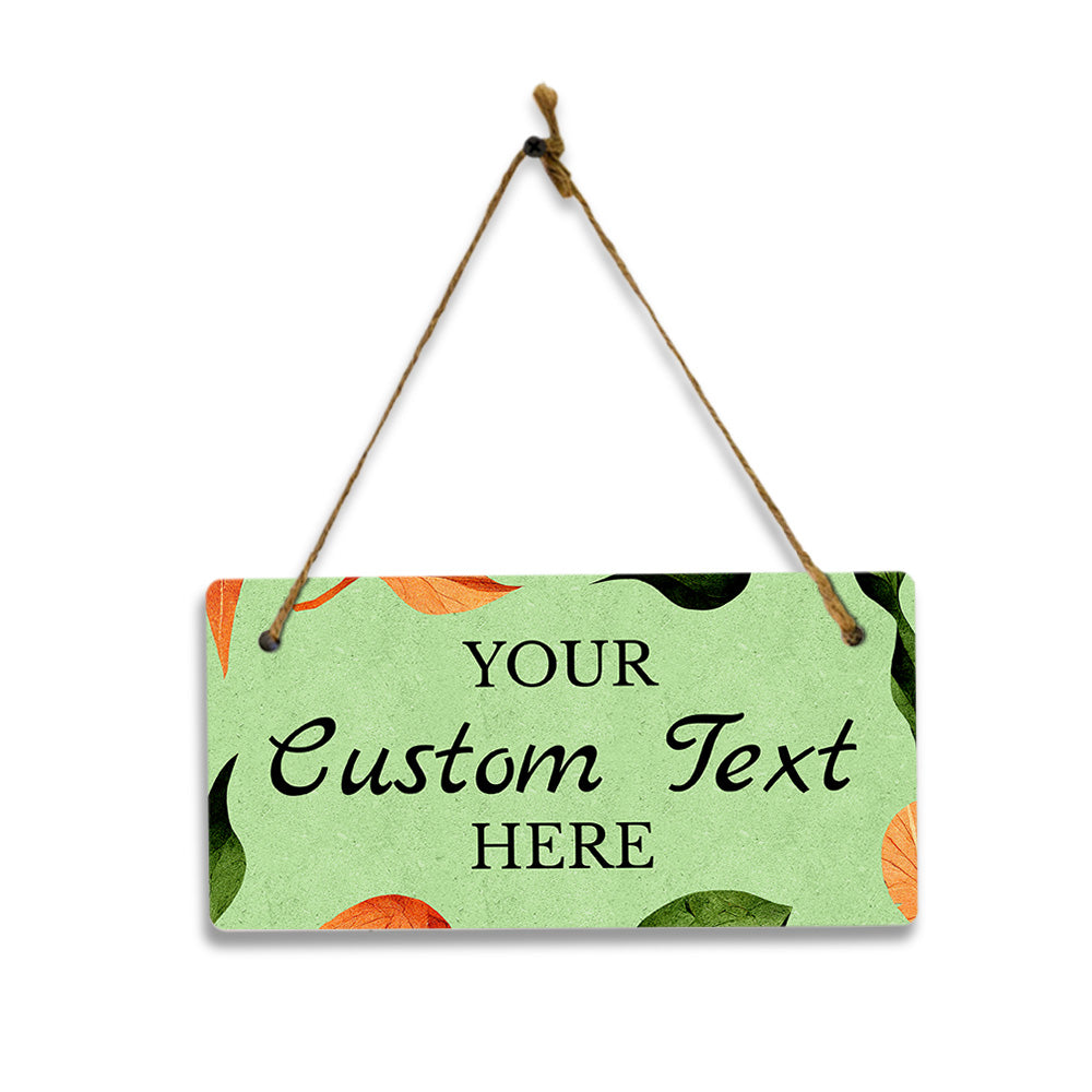 Boho Leaves Green Design Custom 5 x 10" Hanging Wall or Door Sign | Rustic Twine | Personalized Home Decor | Boho Chic Design