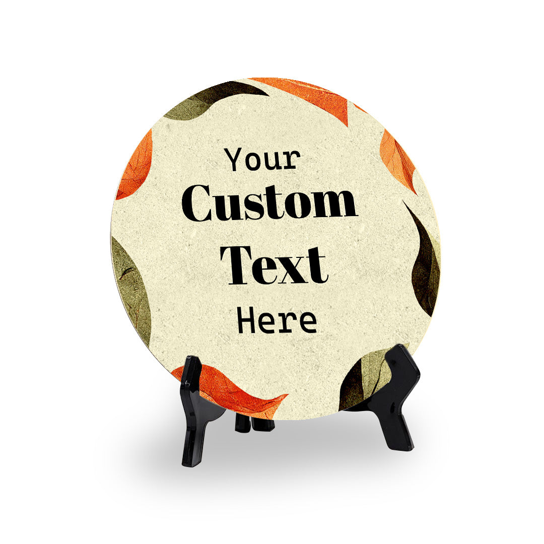 Boho Leaves Personalized Custom Circle Table Sign with Acrylic Stand (5 x 5“) | Home or Business Cute Décor Personalized Signs
