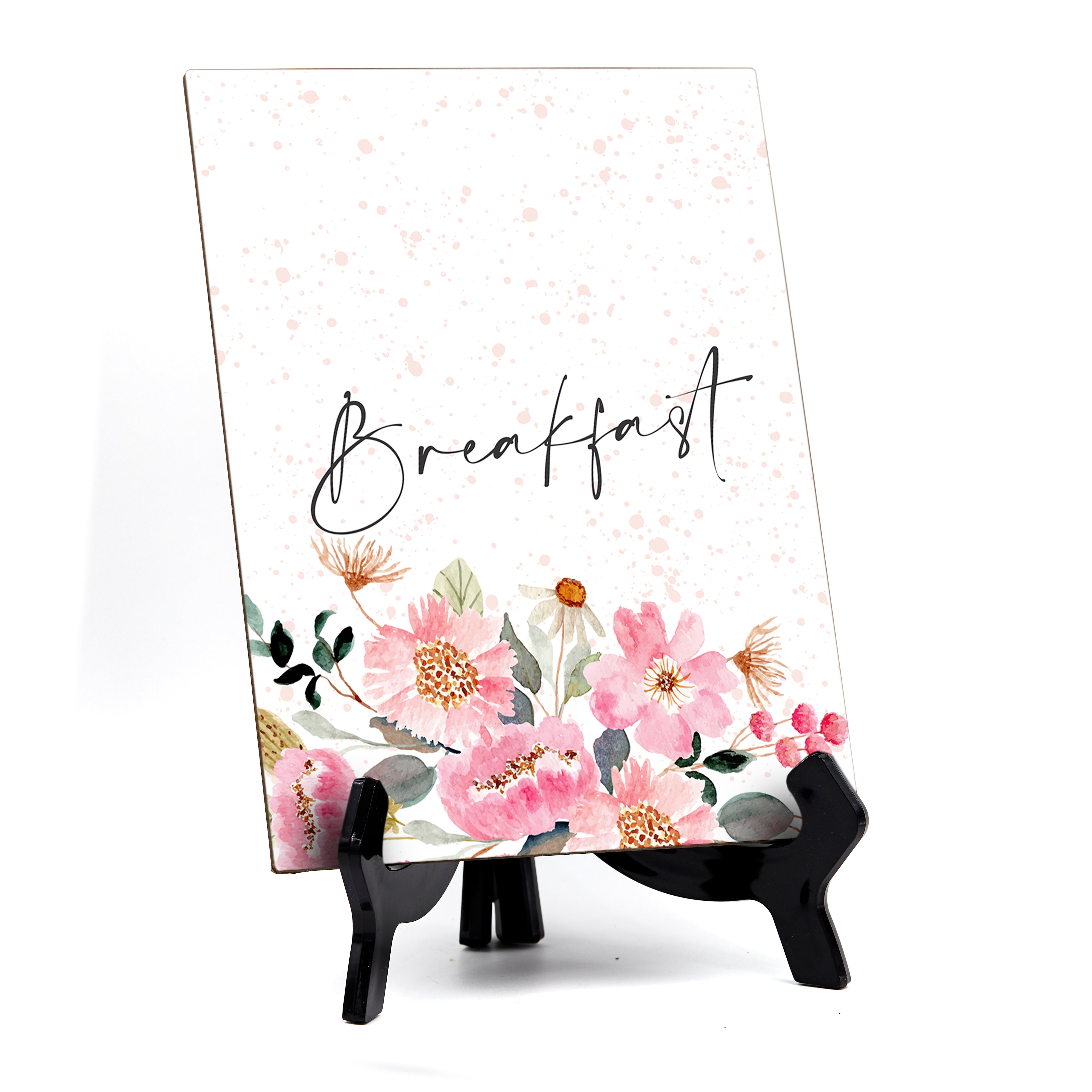 Breakfast Table Sign with Easel, Floral Watercolor Design (6" x 8")