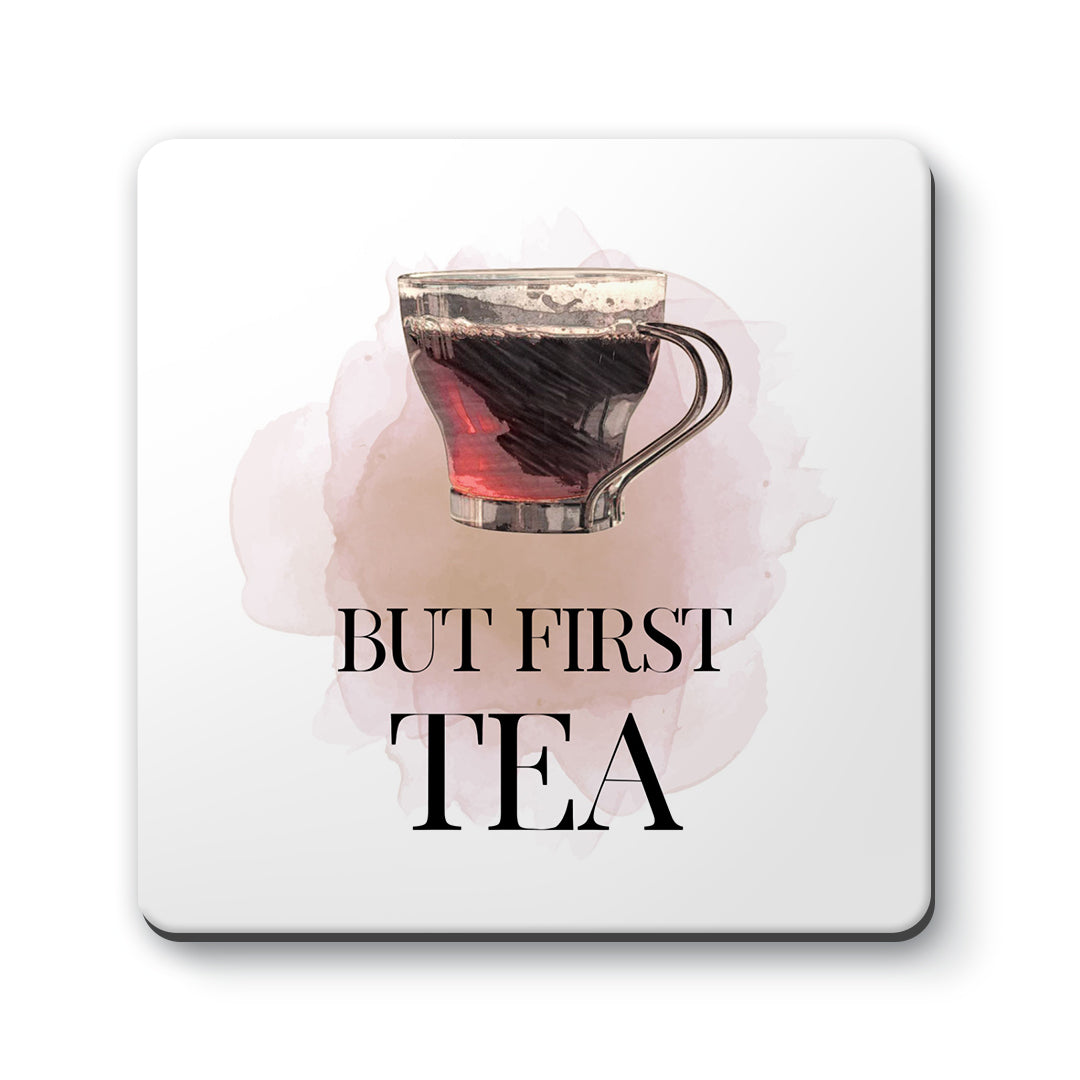 But First Tea Novelty Coaster. Chic décor novelty coasters to protect table tops and surfaces. Help protect...