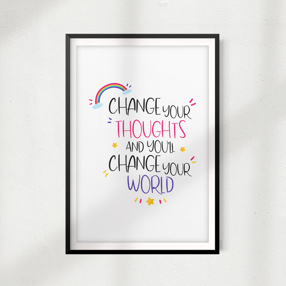 Change Your Thoughts And You'll Change Your World UNFRAMED Print Home Décor, Quote Wall Art
