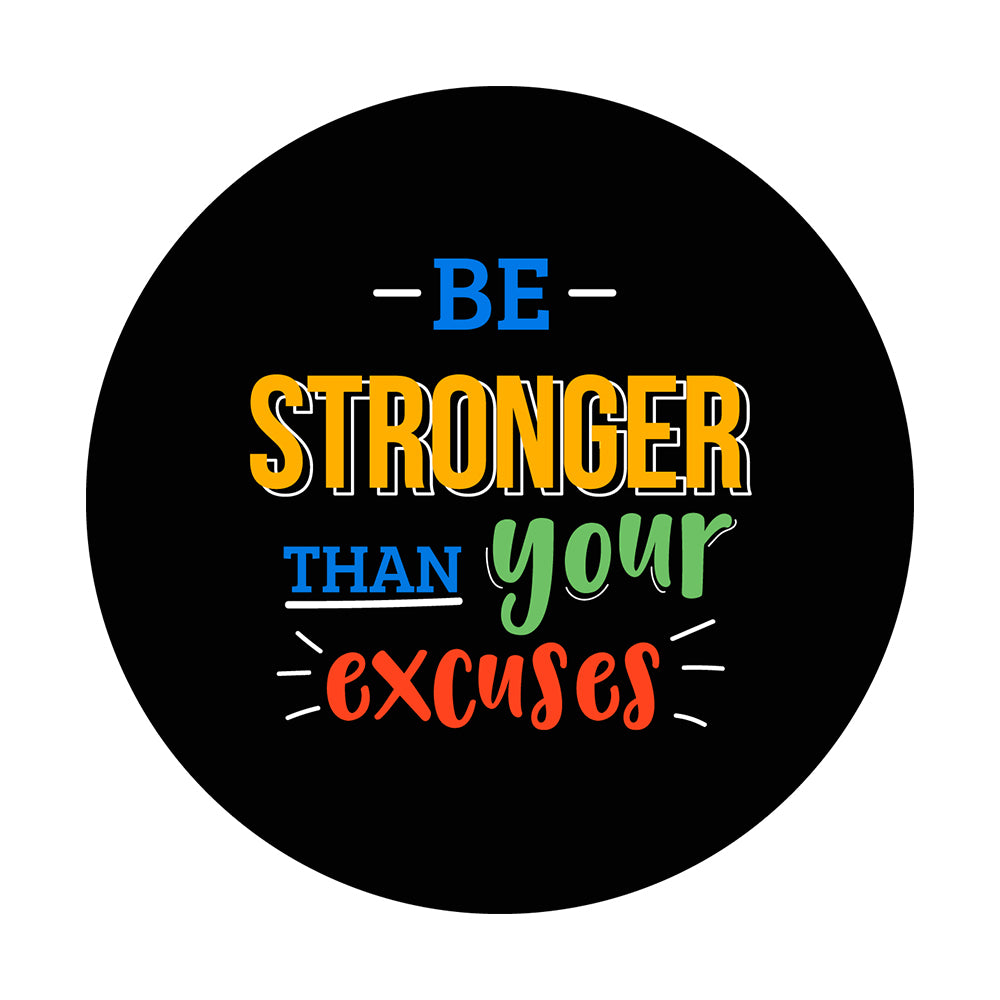 Boost your motivation with this 8x8 circle-shaped mouse pad, featuring the powerful quote "Be Stronger Than Your Excuses." Perfect for any workspace, this mouse pad inspires productivity while offering smooth, precise mouse movement thanks to its premium-quality material. The compact size fits neatly on any desk, and the durable construction ensures it lasts through daily use. Elevate your office decor and stay focused with this stylish and inspiring addition to your desk.