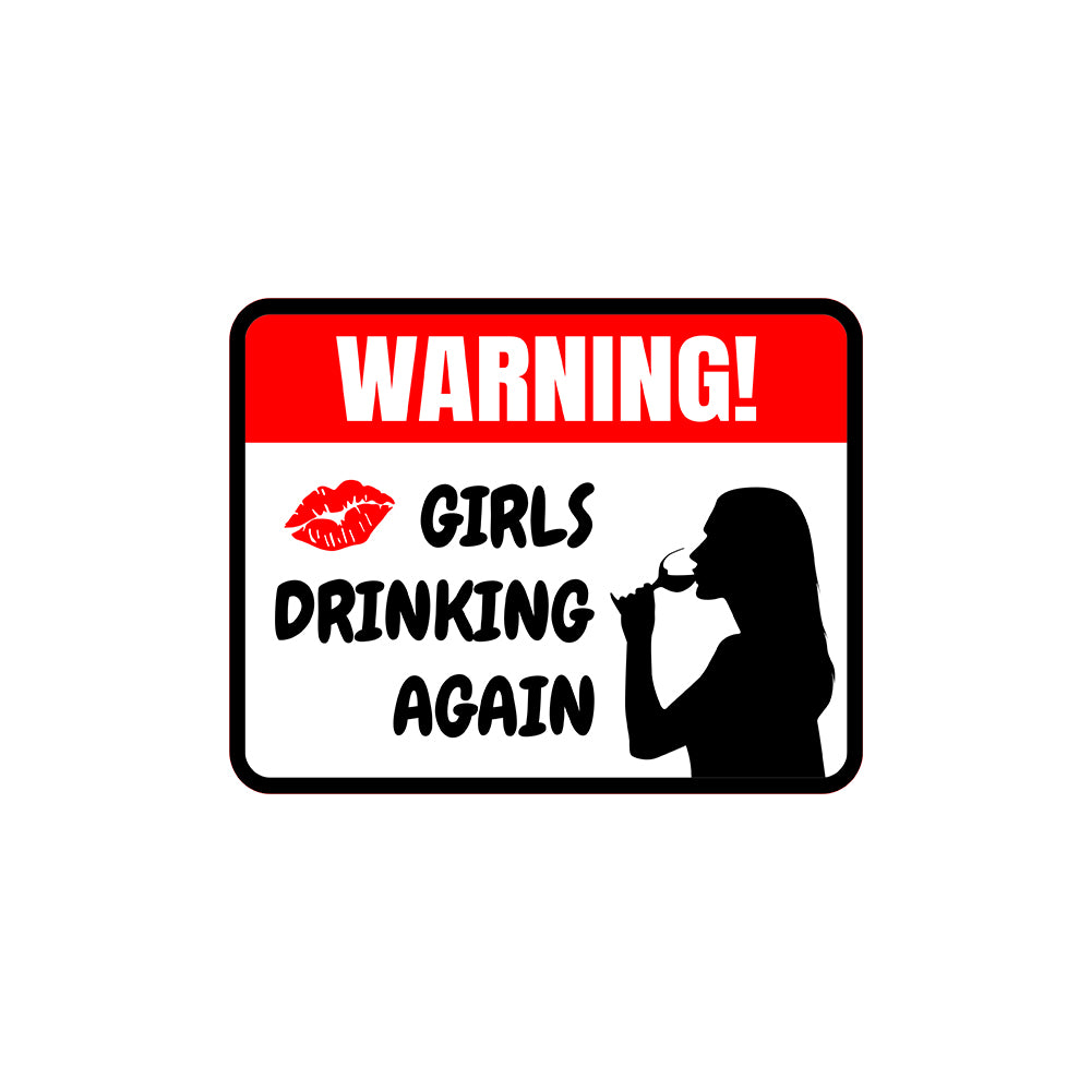 Classic Framed Plus Warning! Girls Drinking Again Wall or Door Sign | Novelty Funny Warning Signs