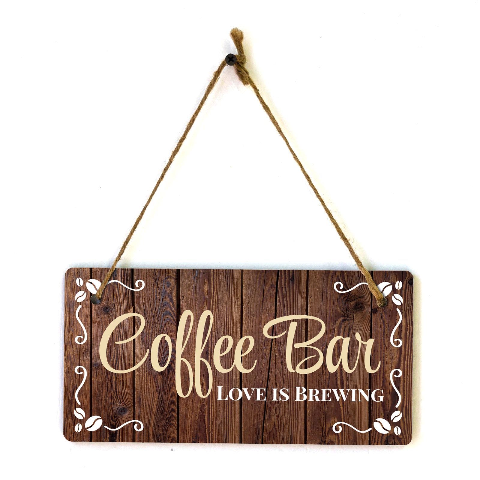 Coffee Bar Love is Brewing 5x10 Hanging Wall or Door Sign