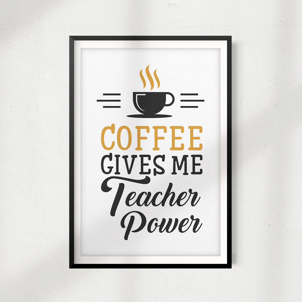 Coffee Gives Me Teacher Power UNFRAMED Print Home Décor, Quote Wall Art