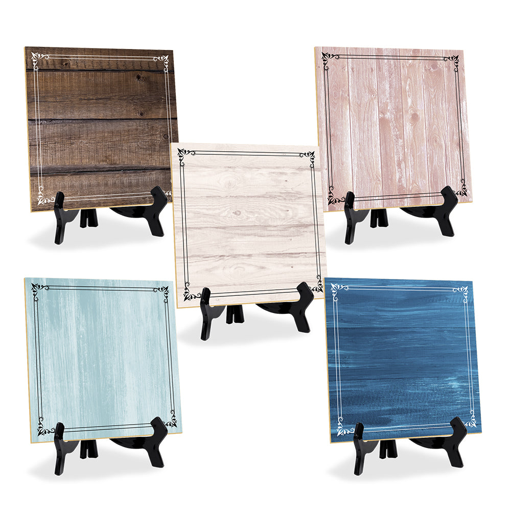 Customizable (5 x 5”) Square Rustic Wood Table Sign with Black Acrylic Easel | Personalized Sign with Multiple Rustic Wood Color Options for Home, Events, & More