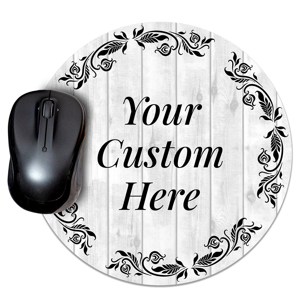 Customizable (8 x 8") Circle Mouse Pad - White Wood Design - Add Custom Message or Text - Personalize Now