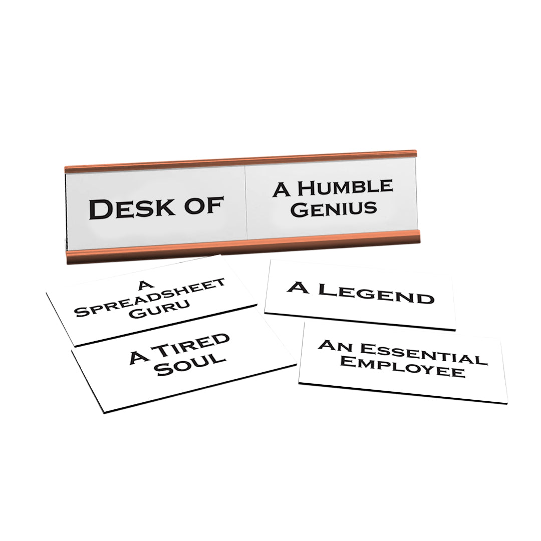 Describe your Desk Word Play Nameplate, Rose Gold Desk Sign, Novelty Gift Nameplate, 6 Interchangeable Tiles (2 x 8")