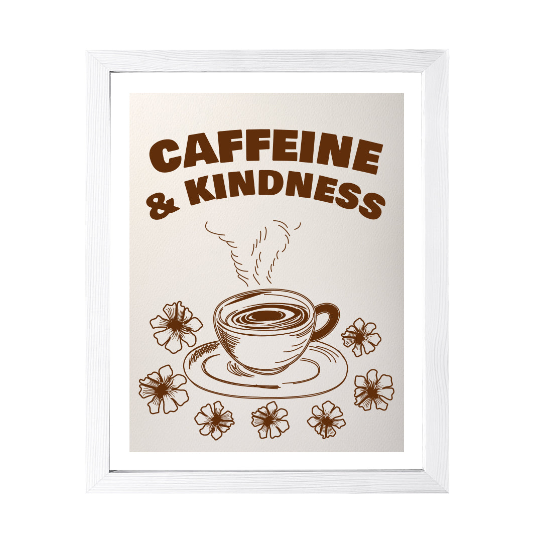 Designs ByLITA Caffeine & Kindness, Wall Print Art | Coffee Retro Kitchen Decoration