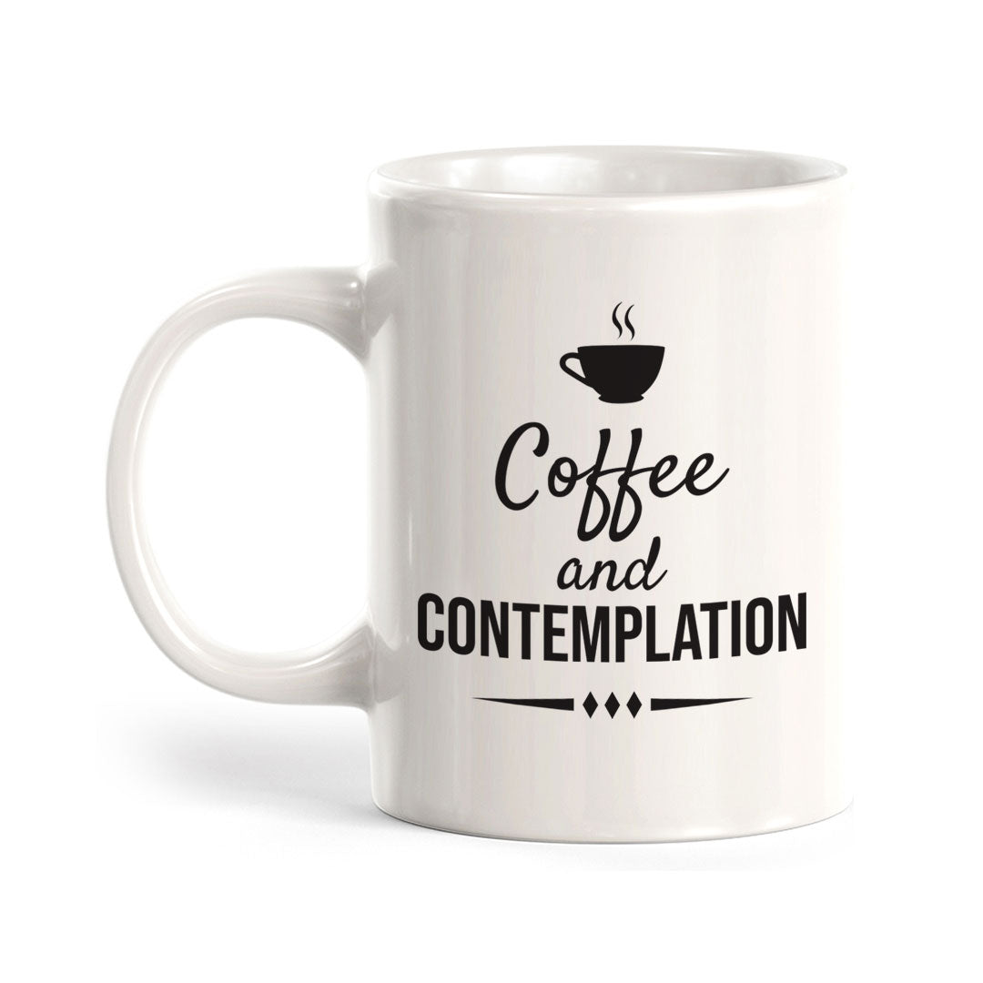 Coffee and Contemplation Coffee Mug. This mug is great for your home, office or workspace. Perfect gift for your friends and family, be sure to check out our other funny mug designs!