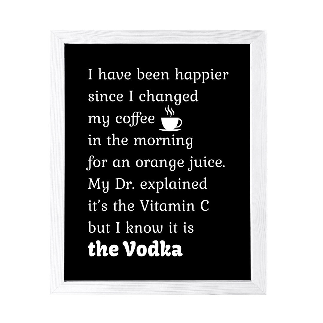 Designs ByLITA I Have Been Happier Since I Changed My Coffee In The Morning For an Orange Juice, My Dr. Explained It's The Vitamin C But I know Is The Vodka, FRAMED Print. Our wall art is available either as a 5" x 7", 8" x 10" or 11" x 14". Printed on 160 GSM high quality card. Comes as an FRAMED print. Easy to hang on any wall. This art is stylish modern decoration for your home and office decoration wall art. Be sure to check out our other designs!