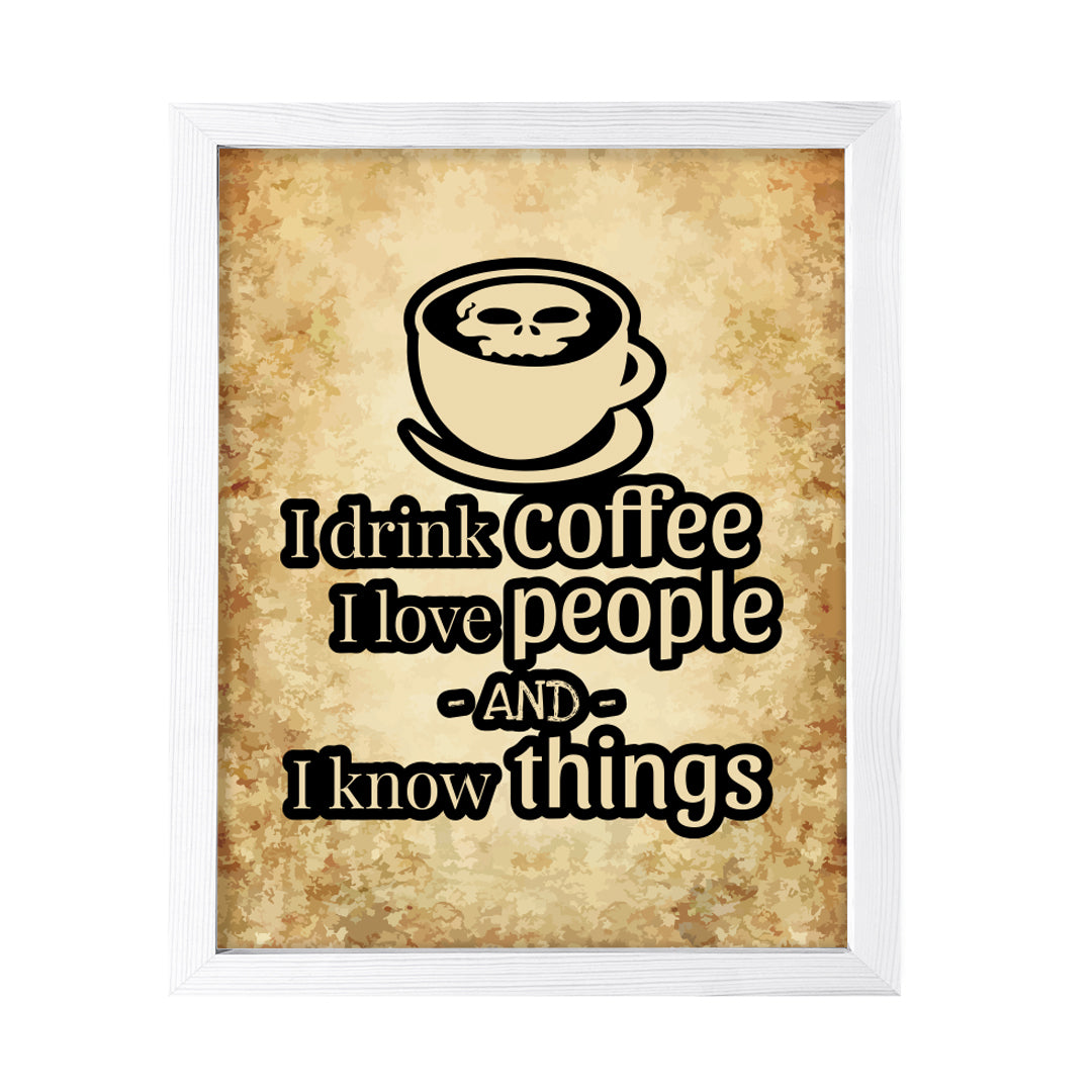 Designs ByLITA I Drink Coffee I Love People And I Know Things", FRAMED Print. Our wall art is available either as a 5" x 7", 8" x 10" or 11" x 14". Printed on 160 GSM high quality card. Comes as an FRAMED print. Easy to hang on any wall. This art is stylish modern decoration for your home and office decoration wall art. Be sure to check out our other designs!
