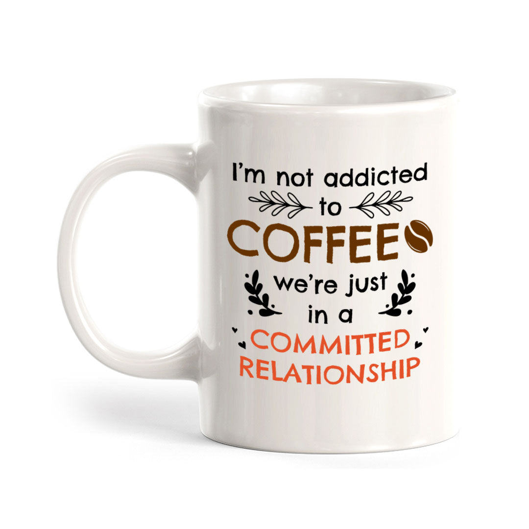 I'm Not Addicted To Coffee; We're Just In a Committed Relationship Coffee Mug. This mug is great for your home, office or workspace. Perfect gift for your friends and family, be sure to check out our other funny sayings mug designs!