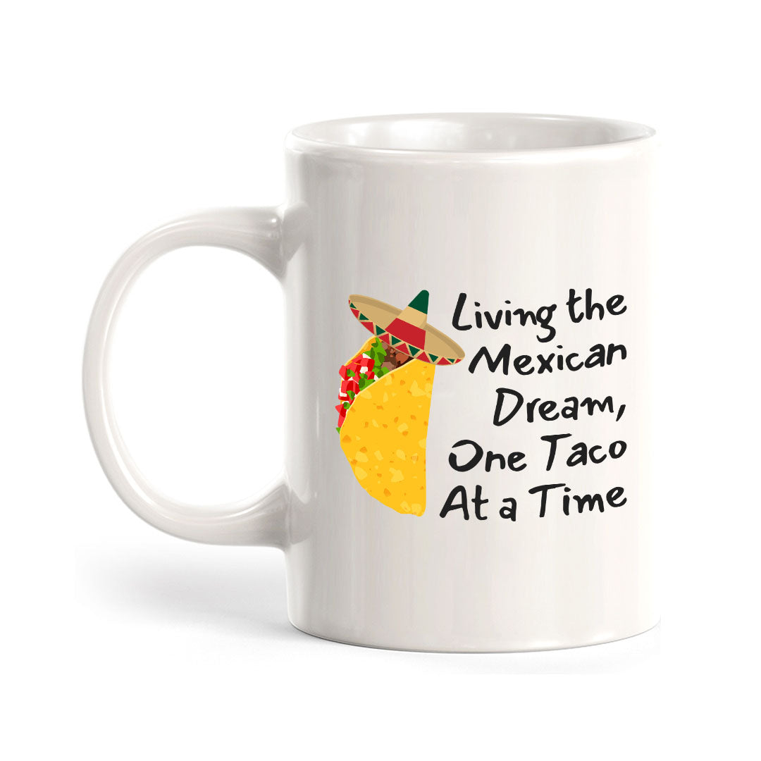 Designs ByLITA Living the Mexican Dream, One Taco At a Time 11oz Plastic or Ceramic Coffee Mug Elegance | Great Novelty Gift | High Quality Sublimation | Mexican Pride