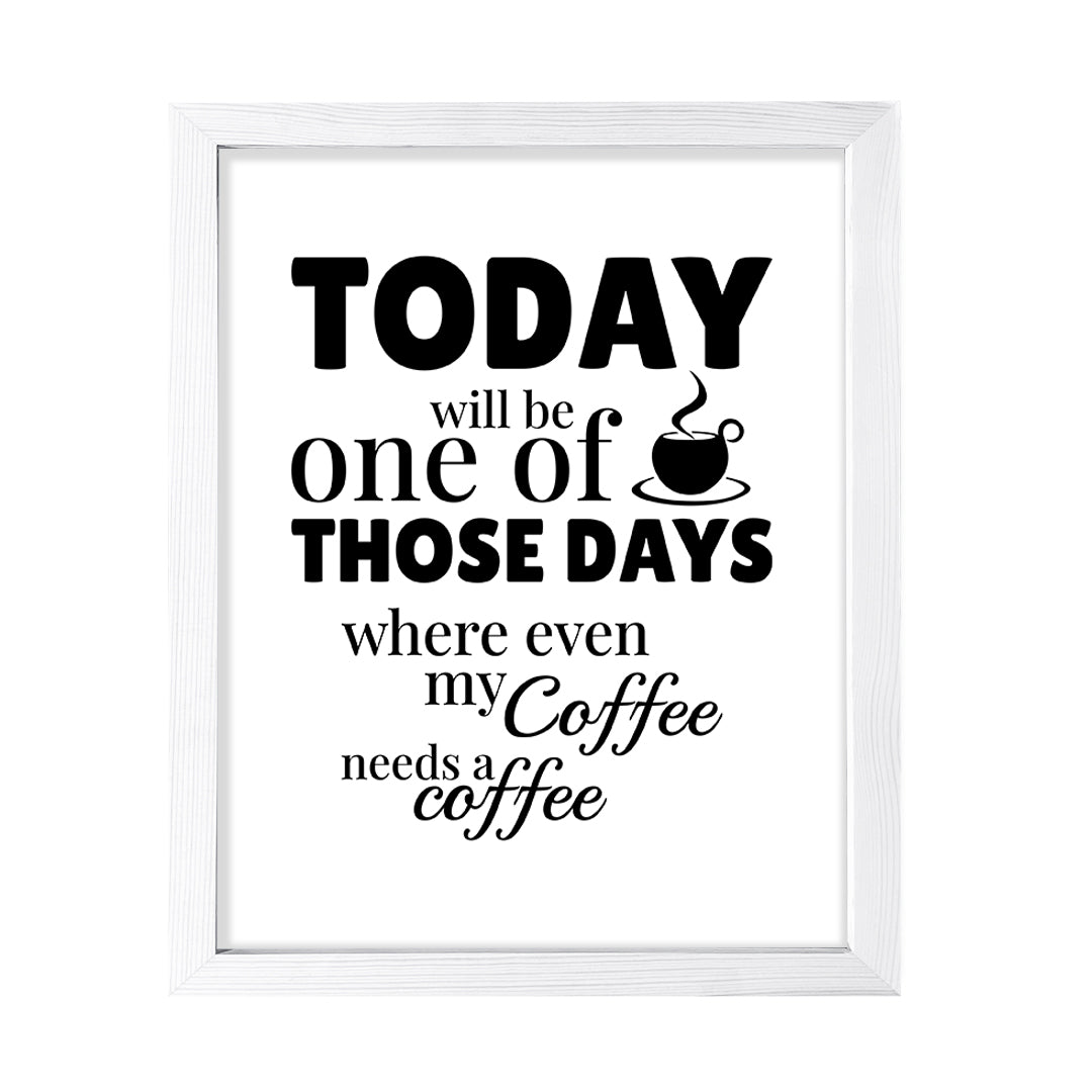 Designs ByLITA Today Will Be One Of Those Days Where Even My Coffee Needs A Coffee (Brown), FRAMED Print. Our wall art is available either as a 5" x 7", 8" x 10" or 11" x 14". Printed on 160 GSM high quality card. Comes as an FRAMED print. Easy to hang on any wall. This art is stylish modern decoration for your home and office decoration wall art. Be sure to check out our other designs!