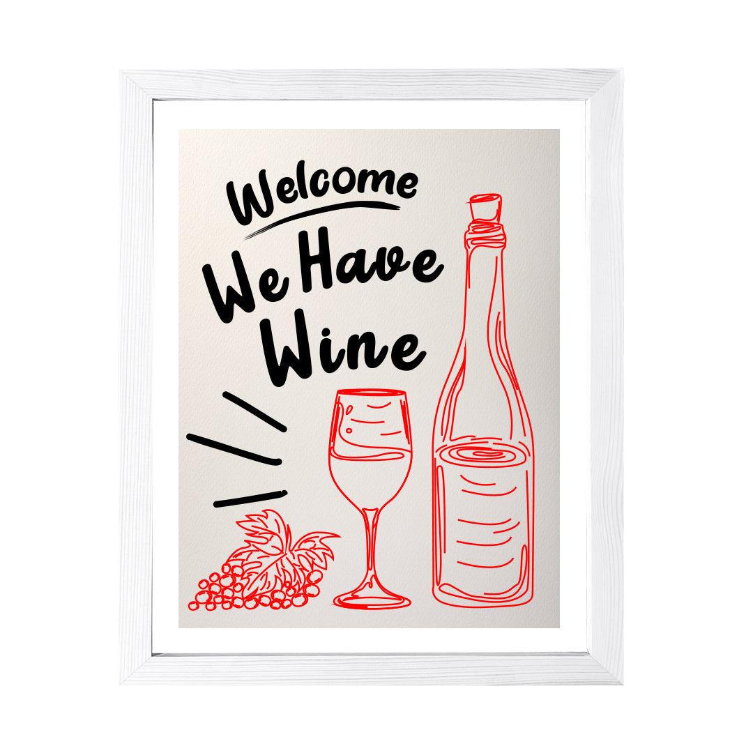 Designs ByLITA Welcome We Have Wine, FRAMED Print. Our wall art is available either as a 5" x 7", 8" x 10" or 11" x 14". Printed on 160 GSM high quality card. Comes as an FRAMED print. Easy to hang on any wall. This art is stylish modern decoration for your home and office decoration wall art. Be sure to check out our other designs!