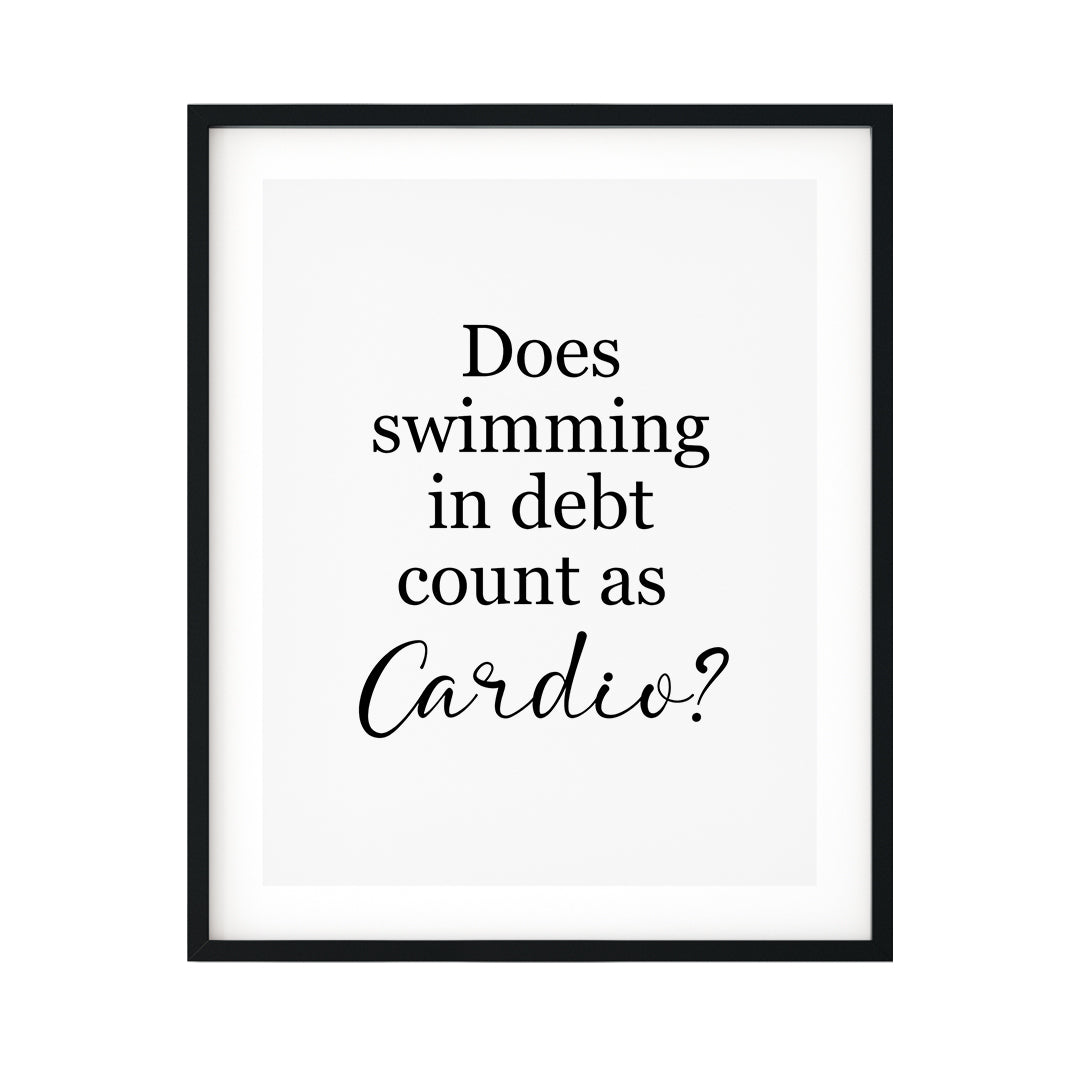 Does Swimming In Debt Count As Cardio? UNFRAMED Print Novelty Decor Wall Art