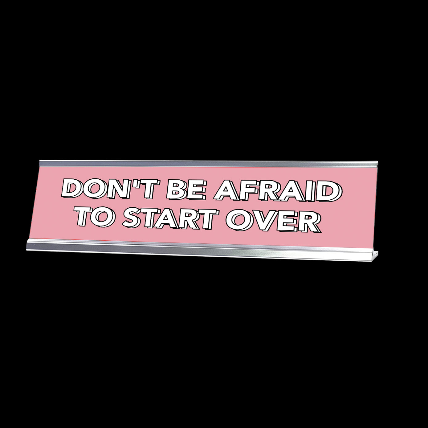 Signs ByLITA Novelty Desk Sign Nameplate "Don't Be Afraid To Start Over". Fun novelty desk sign gift idea for friends, family colleagues, bosses, managers and more. The premium sublimated plastic nameplate comes with a sturdy colored aluminium frame. Great for home or office funny desk sign.