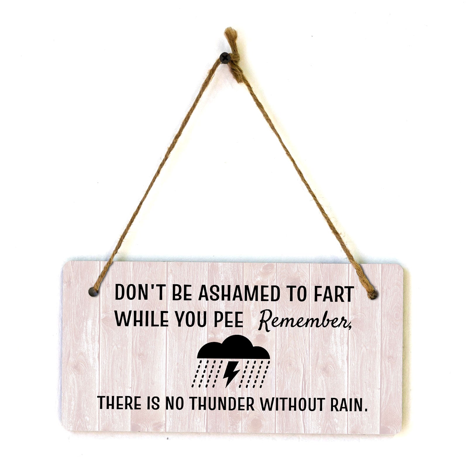 Don't Be Ashamed To Fart While You Pee Remember, There Is No Thunder Without Rain. 5x10 Hanging Plus Wall or Door Sign