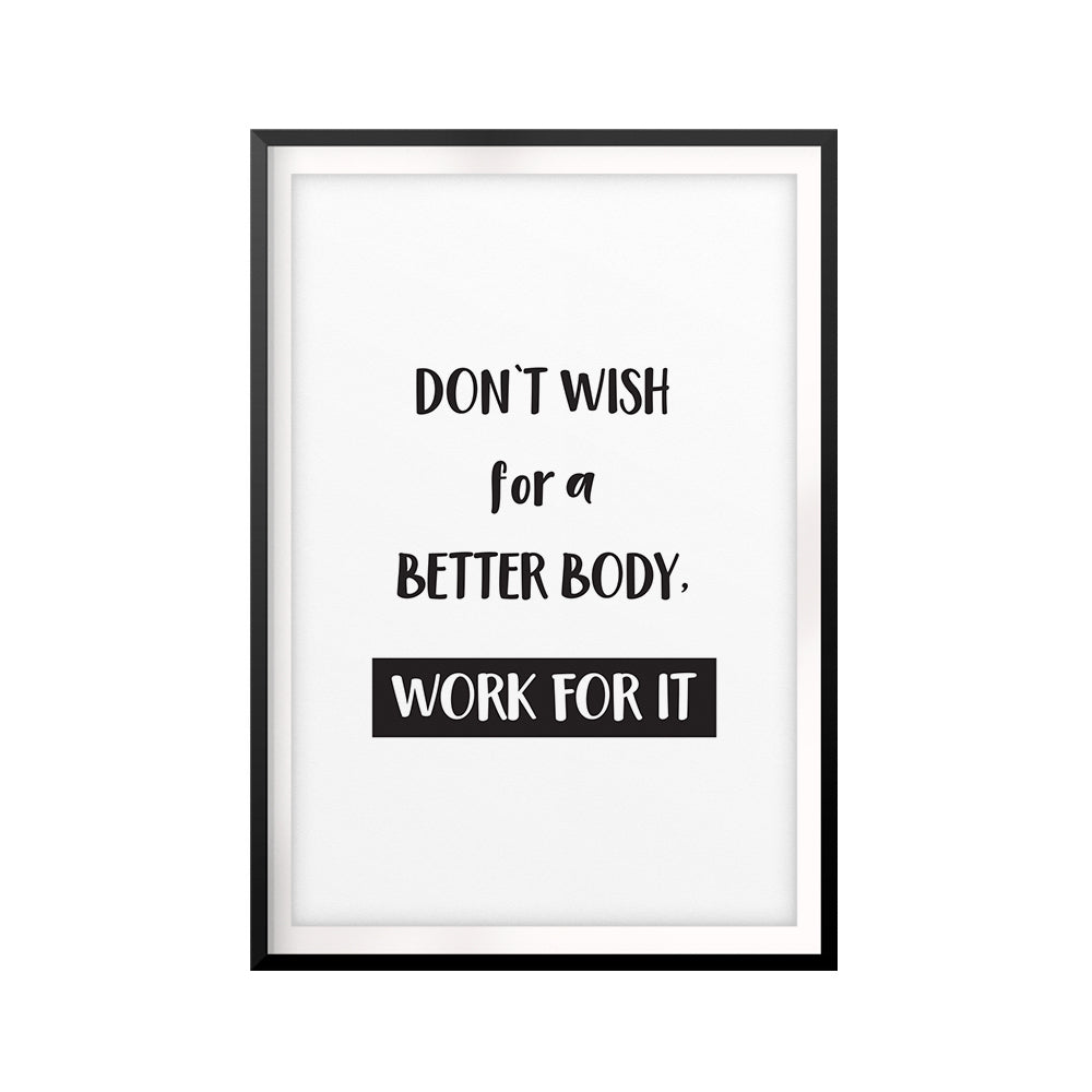Don't Wish For A Better Body, Work For It UNFRAMED Print Workout Motivation Wall Art