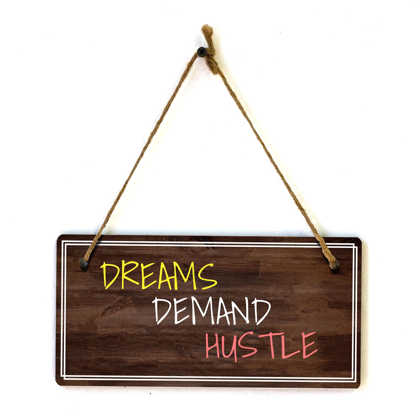 Dreams Demand Hustle 5x10 Hanging Plus Wall or Door Sign | Home Decor