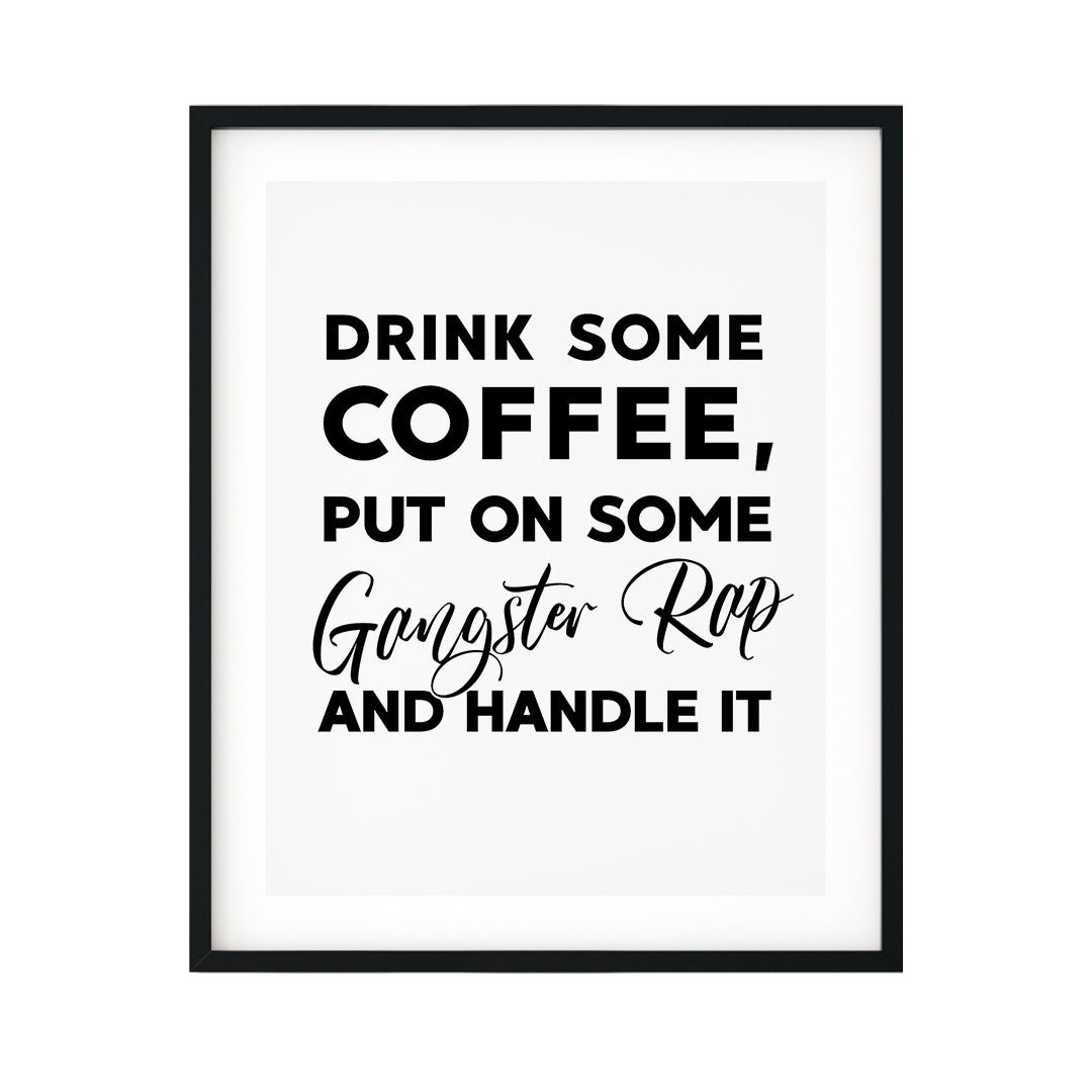 Drink Some Coffee, Put On Some Gangster Rap And Handle It UNFRAMED Print Kitchen Bar Wall Art