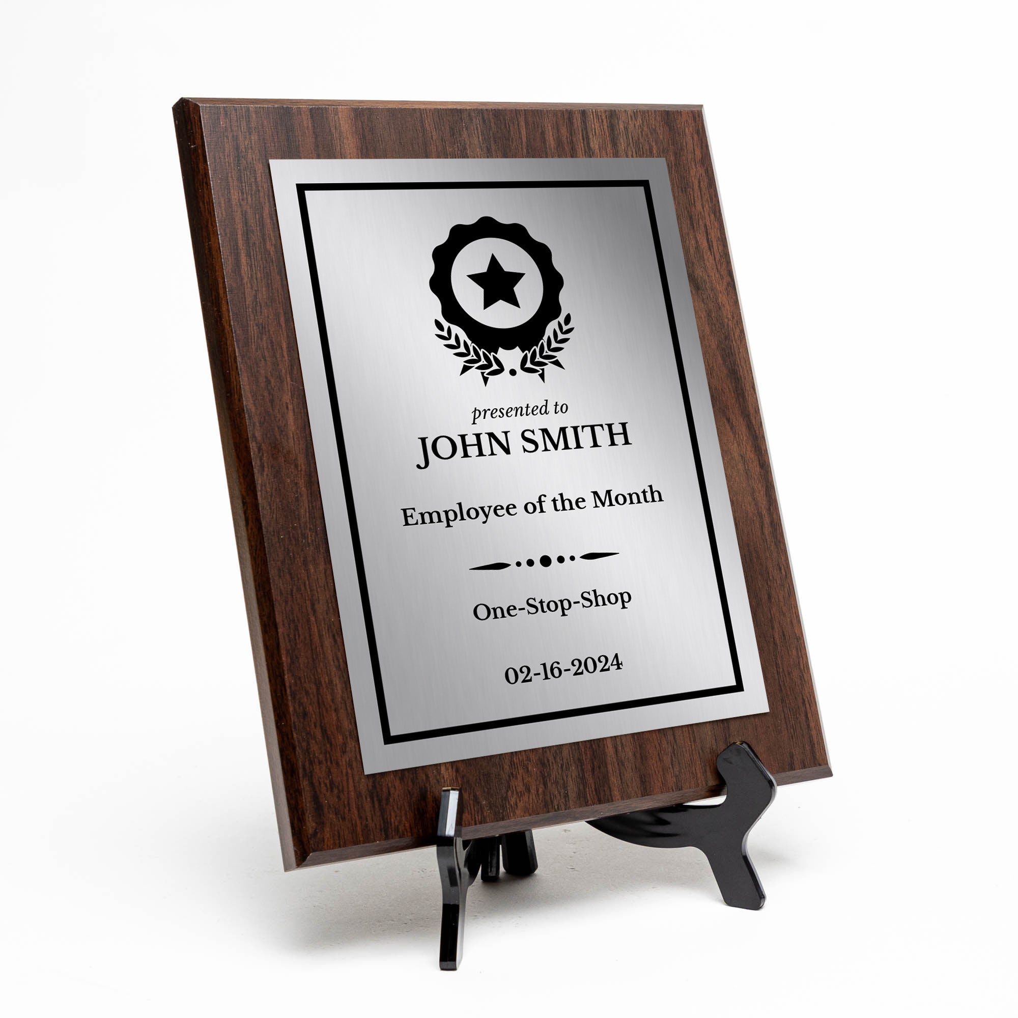 Employee Of The Month Customizable Award Plaque |Easel Mount Option | Recognition of Achievement and Service Personalizable Plaques