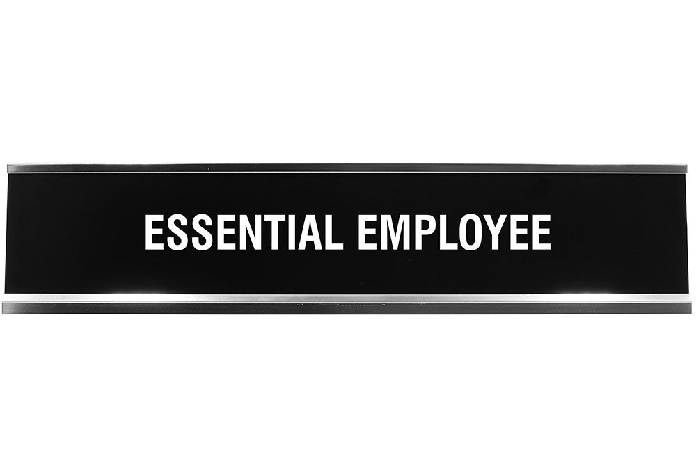 Novelty Desk Plate sign for the at home or work. The name plate is black with white lettering. Plate slides into a silver aluminum desk holder.
