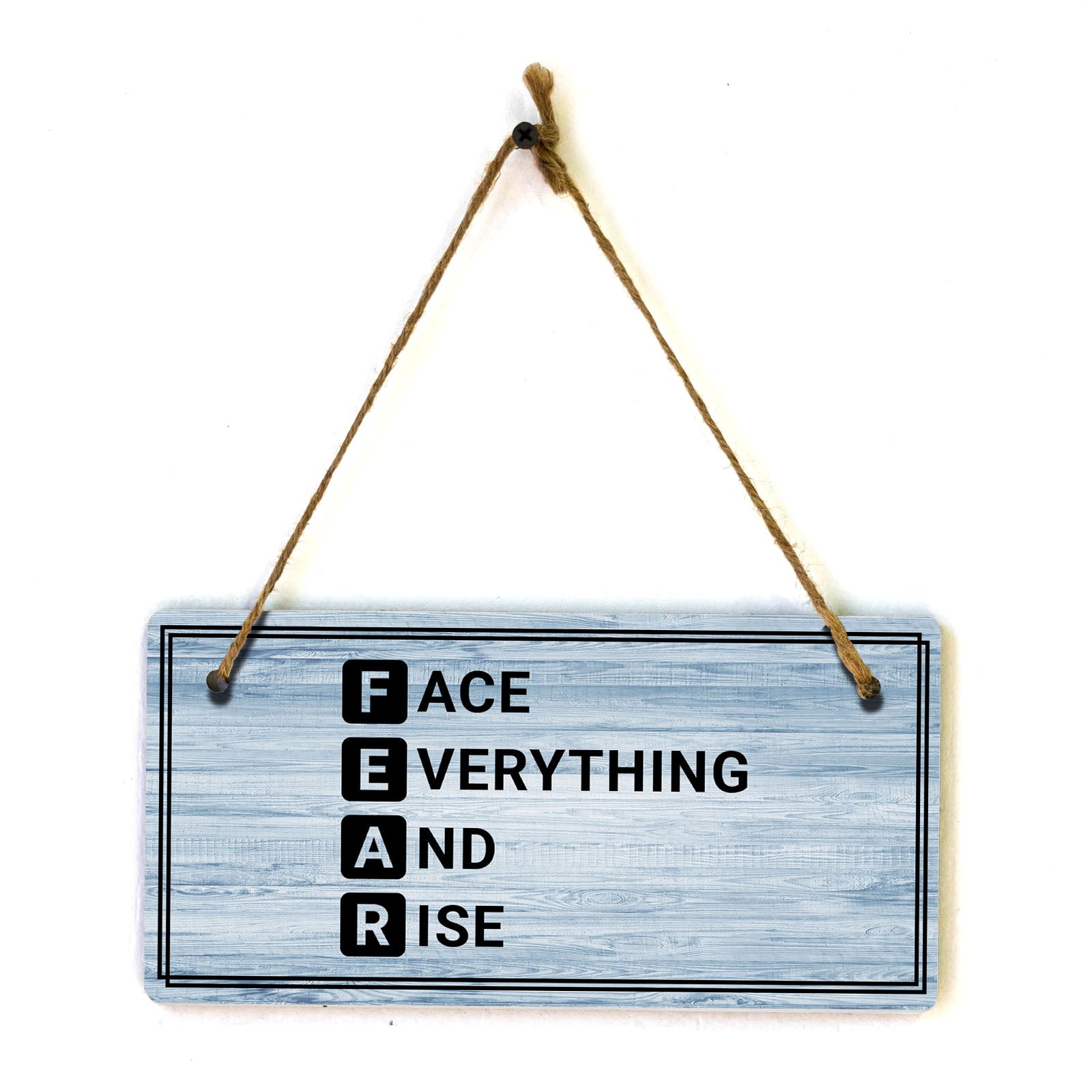 Introducing our versatile and stylish FEAR, the perfect blend of style and sophistication to elevate your home or workplace. Our 5x10 Hanging Sign range is the perfect choice for your home, workplace or business. Each sign is attached with rustic twine, providing a charming and versatile accent for any space. Our curated designs effortlessly complement a variety of styles, from rustic farmhouse or Modern Chic, to simple and functional options. Choose from our diverse range of designs to personalize your space. Whether it's a warm welcome at the entrance, a motivational quote for your workspace, or a playful touch for the kids' room, our Hanging Wall or Door Signs are the perfect way to express your unique style.
