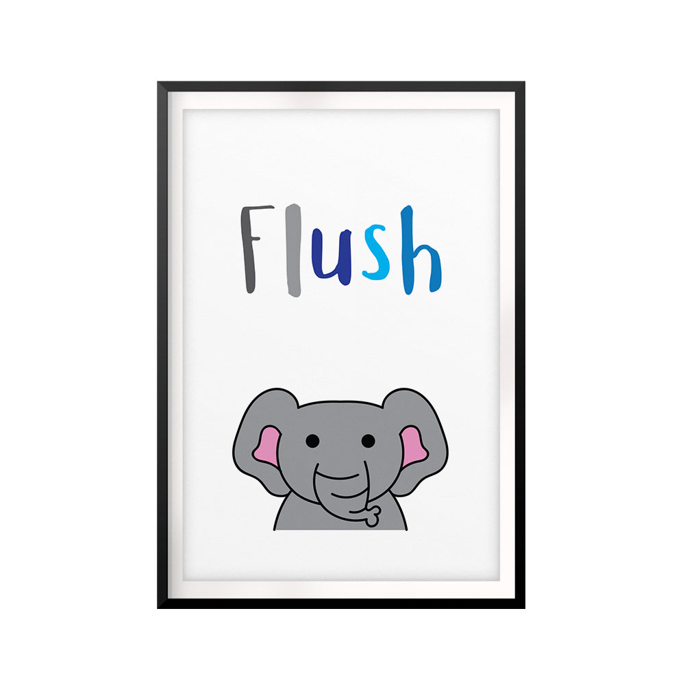 Flush Reminder Cute UNFRAMED Print Kids Bathroom Wall Art